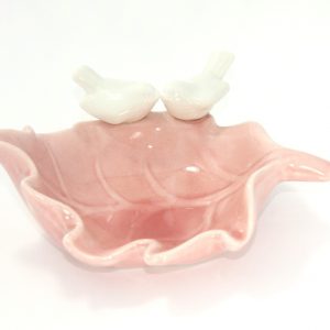 Prato folha rosa com pássaro branco